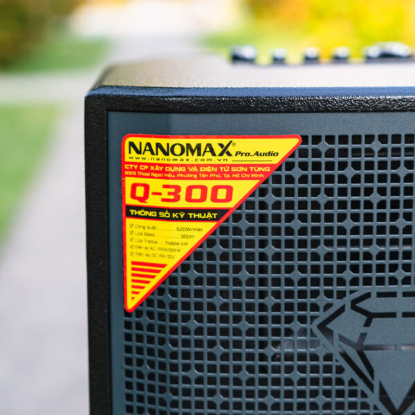 Nanomax Q-300 là mẫu loa karaoke xách tay mới ra mắt với thiết kế lưới rất đẹp, bảng điều khiển cơ bản đầy đủ tất cả chức năng, nhà sản xuất làm vát cạnh sau để loa có 2 dáng đứng thẳng hoặc nghiêng góc 30 độ giúp âm thanh phóng xa hơn như loa Monitor. Sở hữu công suất tối đa 520w, gồm 1 loa bass 30cm và 1 treble còi… giúp Nanomax Q-300 đáp ứng được karaoke và nghe nhạc cả trong nhà lẫn ngoài trời, đặc biệt biệt là những chuyến du lịch xa.
