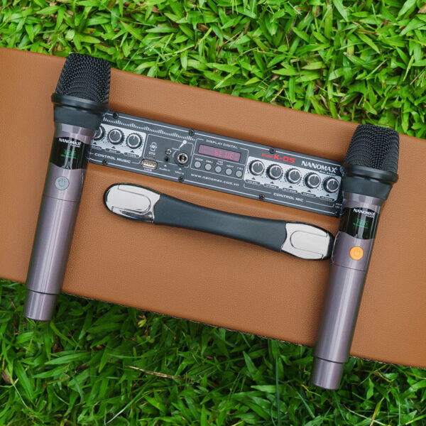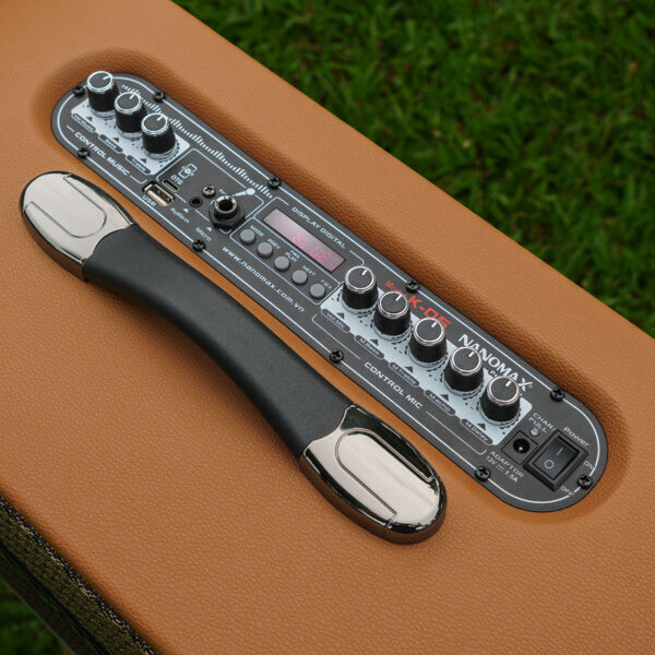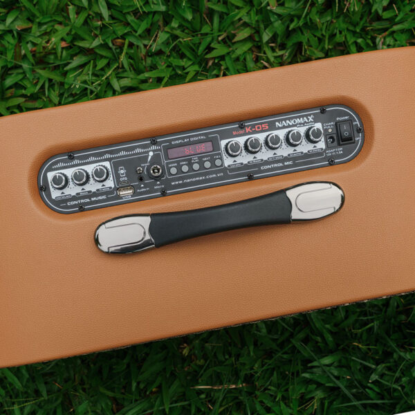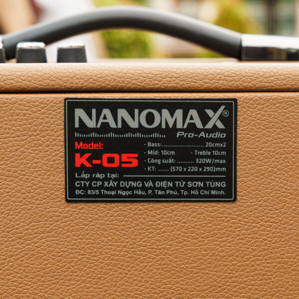 Nanomax K-05 là mẫu loa karaoke xách tay mới ra mắt của hãng Nanomax có thiết kế khá lạ so với các mẫu loa xách tay khác trước đó. Vẫn là sở hữu 2 bass 20cm, 1 mid 10cm, 1 treble 10cm, công suất cực đại 320w… đáp ứng karaoke và nghe nhạc cá nhân hoặc gia đình. Tuy nhiên, K-05 lại tỏ ra khiêm tốn khi sở hữu cặp micro band VHF, nhưng vì lý do đó mà giá thành nó sẽ rất tối ưu cho khách hàng.