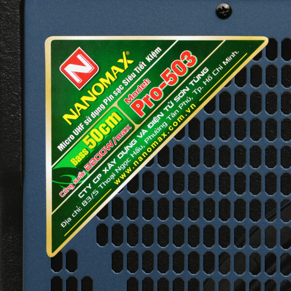 Nanomax Pro-503 là mẫu loa kéo 5 tấc mới ra mắt với thiết kế array mới lạ gồm 1 loa bass 5 tấc, 4 loa mid 16cm, 2 loa treble còi… Với công suất 2200w/max, Nanomax Pro-503 phù hợp hát karaoke ngoài trời, không gian rộng với tính cơ động cao.