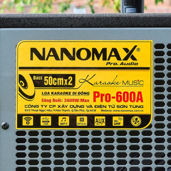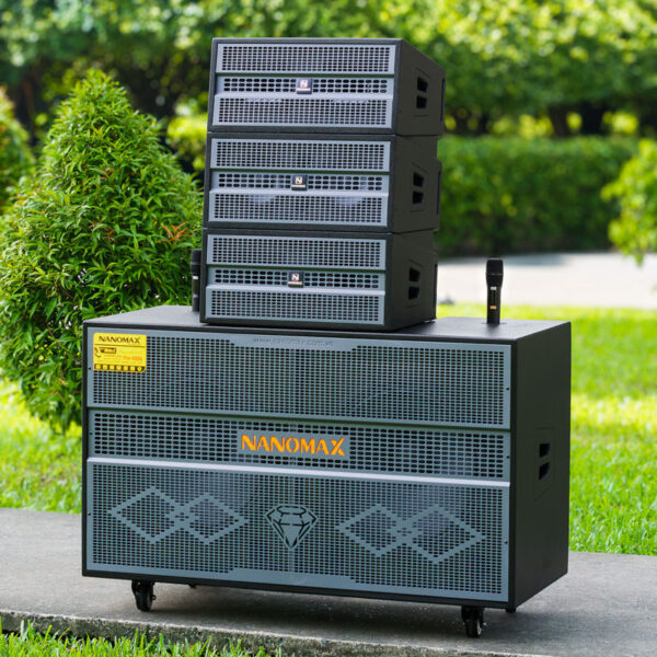 Nanomax Pro-600A là mẫu loa kéo bình đầu tiên tại Nanomax có thiết kế kết hợp giữa loa kéo bass đôi ngang và thùng array tạo sự mới lạ nhưng vẫn đảm bảo được nhu cầu sử dụng lớn. Sở hữu 2 loa bass 50cm, 2 loa mid 16cm và 4 treble còi… Nanomax Pro-600A có thể phục vụ bữa tiệc quy mô lớn ngoài trời.