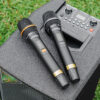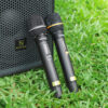 Trong hộp có: 1 loa, 2 mic pin sạc và 1 dây sạc